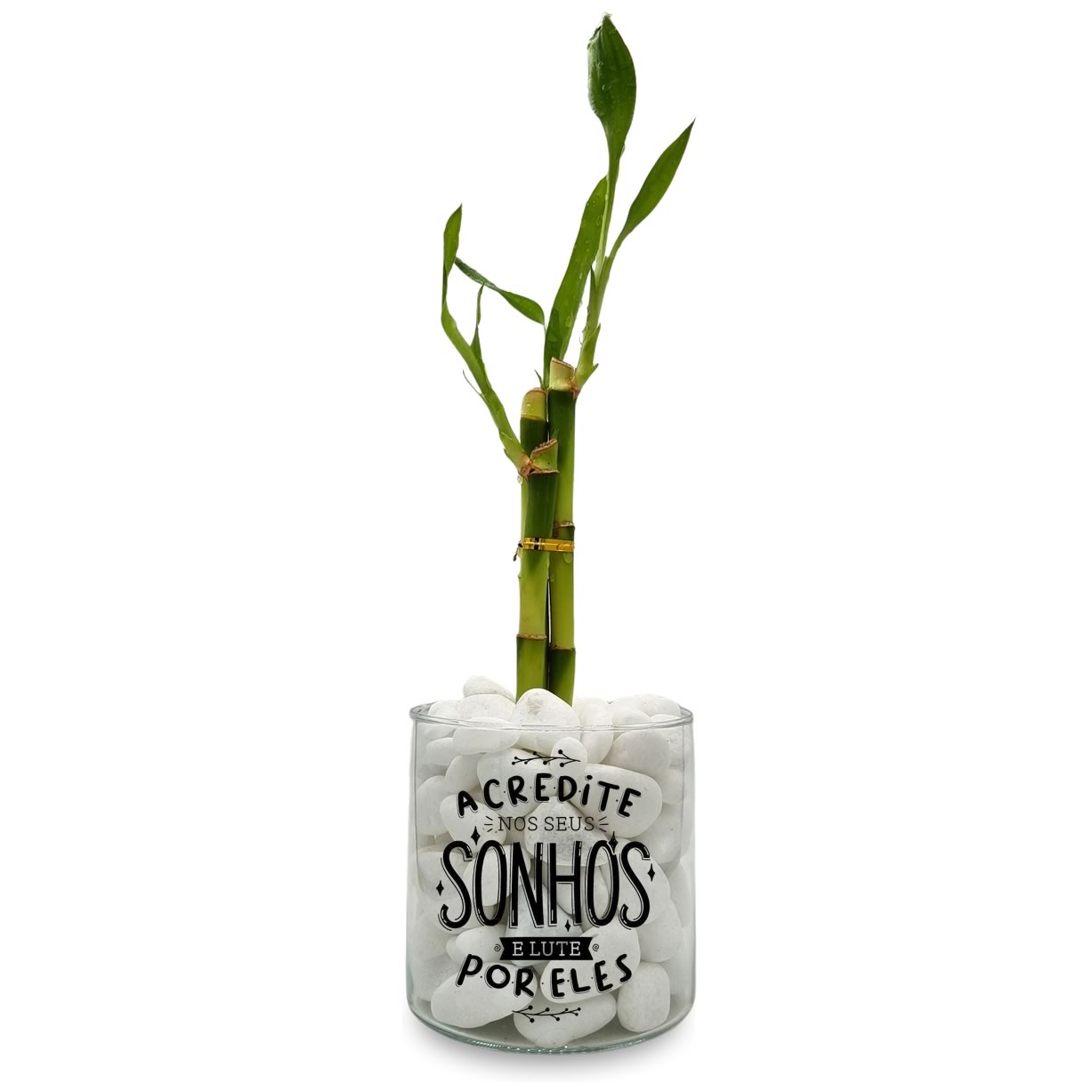 Bambu da Sorte com Vaso em Vidro (Acredite nos seus Sonhos)
