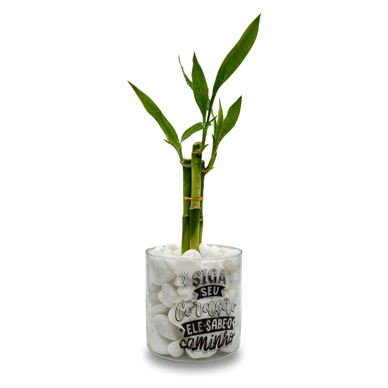 Bambu da Sorte com Vaso em Vidro (Siga seu Coração)