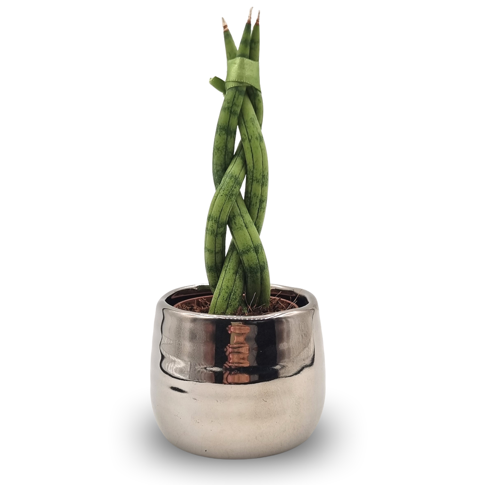 Cachepot Prateado com Lança de São Jorge Trançada (Pequena)